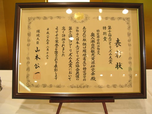 日本エコツーリズム大賞特別賞受賞(2017年2月15日)